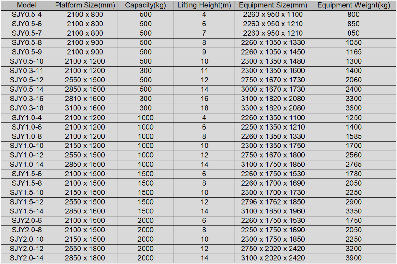3. The equipment mostly uses electro-hydraulic lifting power, can also be equipped with manual hydraulic lifting device as needed, the power form is varied: 1P, 220V AC power supply, 3P, 380V AC power supply, DC 12V (24V, 36V, 48V, 60V), AC and DC dual-purpose or diesel engine. It can be customized according to the needs of the customer’s local.