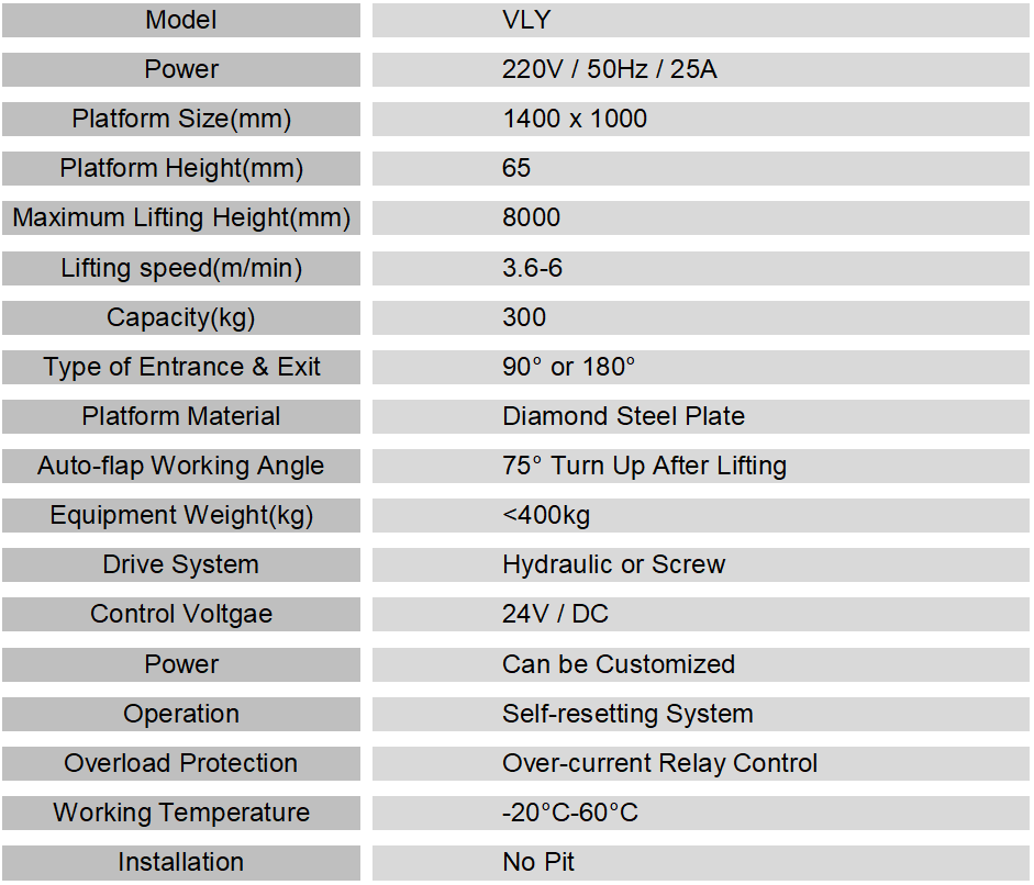 1. It is a customized product that can be customized according to different requirements of customers, such as lifting height, capacity and platform size.